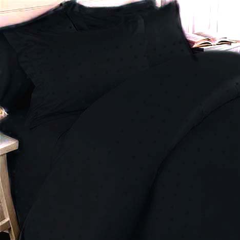 KING sheet set in color BLACK WOVEN SQUARE (1/4") that is very subtle. Experience the rich soft feel of this exceptional sheet set. Woven in the worlds finest 300TC Egyptian Cotton for the ultimate in lavish comfort and durability. A truly amazing set. Set includes one fitted bottom sheet for a 78x80 mattress that is up to 18 thick. The oversized top sheet measures 110x102. Two pillow cases 41x30. Matching duvet cover sets and bed skirts in my other Amazon bedding listings.